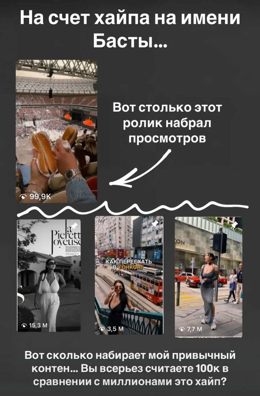 Ева БогутКроме того, девушка отметила, что её ролик о концерте Басты собрал меньше просмотров, чем её другие видео, и что статистика её аккаунта в инстаграме* даже не выросла с тех пор, как разразился скандал, а вот в соцсетях Елены повысилась активность: “Вопрос ещё, кто на ком хайпит. Некоторым людям очень сложно представить, что негативный отзыв может быть просто ревью, без цели на ком-то заработать”. Она осудила Пинскую за её реакцию на мнение незнакомого человека.