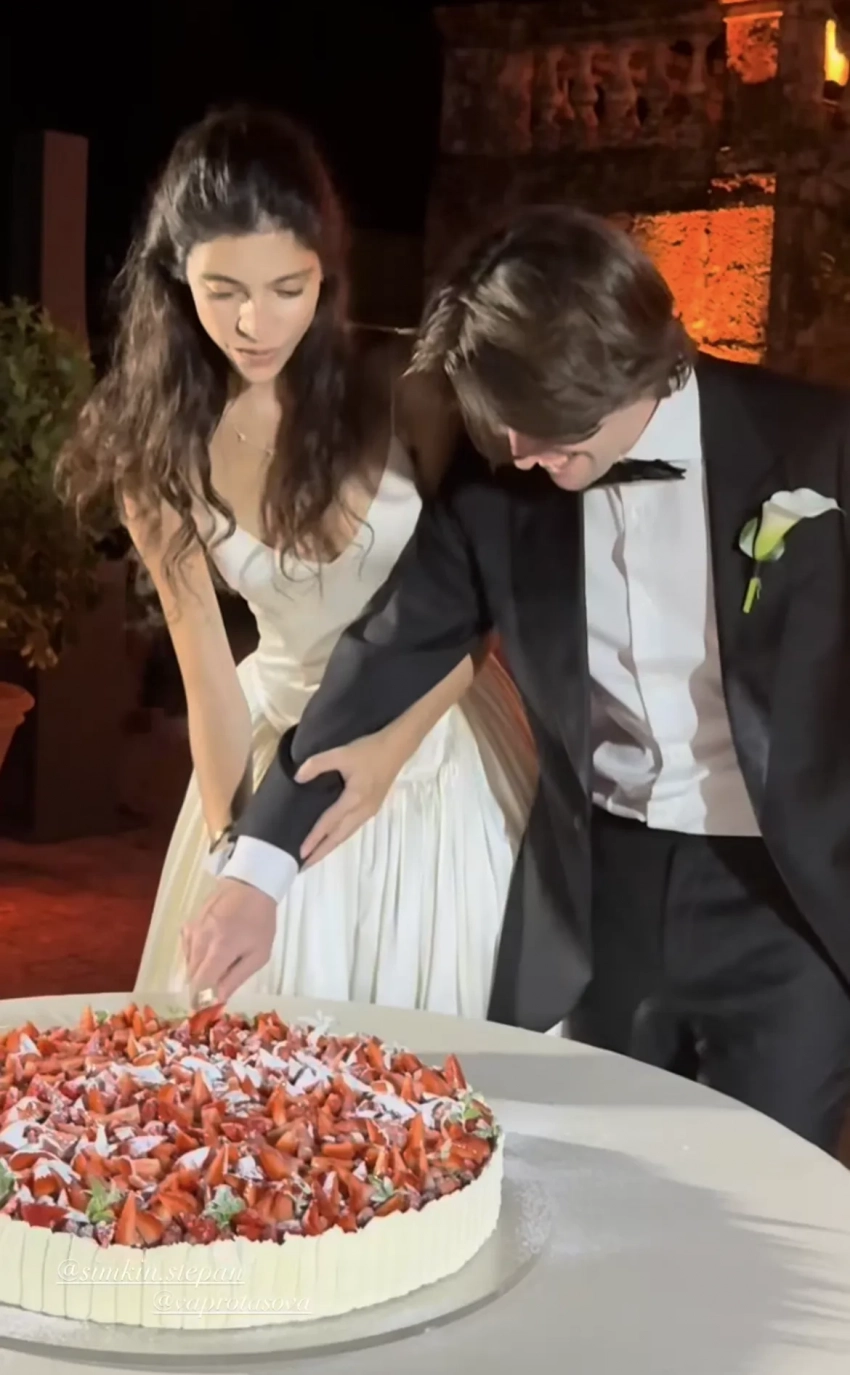 Свадьба 23-летней Варвары прошла в итальянском стиле в роскошном поместье в Тоскане. Невеста в платье Danielle Frankel и жених в смокинге Tom Ford обменялись свадебными клятвами в саду у стен виллы Четинале, а после гостей праздника ждал обед на свежем воздухе. Вечером невеста переоделась во второй образ — платье Prada и до самой ночи танцевала вместе с гостями под треки приглашённого диджея.