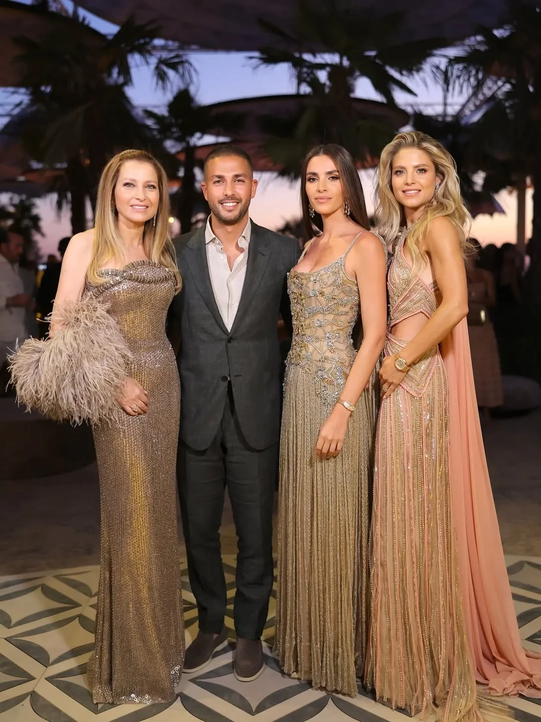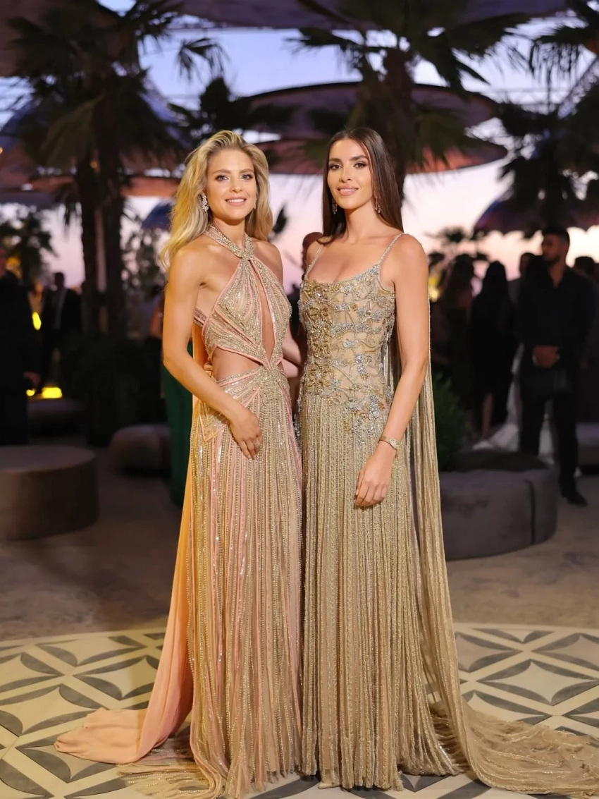 Селио Сааб и Зейн КутамиЗейн блистала перед гостями в кутюрном платье цвета шампань, расшитом кристаллами и созданном, конечно, знаменитым модным домом свёкра — Elie Saab. Жена и невестка дизайнера тоже надели его творения, дополнив их ювелирными украшениями с бриллиантами.