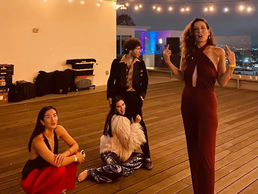Селена Гомес, которой во вторник исполнится 33 года, показала, как отмечает наступающий день рождения. В своём инстаграме* она опубликовала фото с вечеринки на крыше в компании жениха Бенни Бланко и подруги Тейлор Свифт.