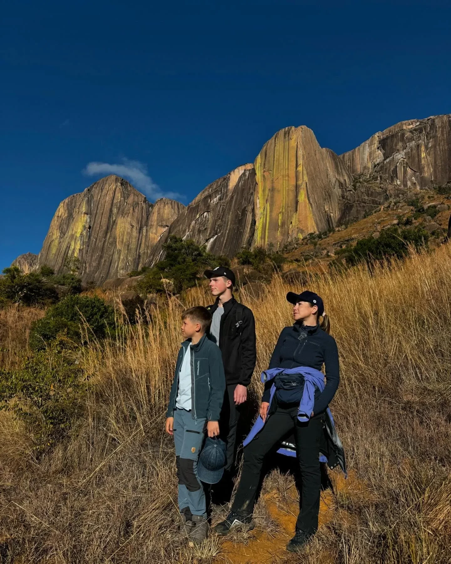 На фото Юлия с детьми любуются местными красотами, знакомятся с фауной "острова лемуров" и исследуют пещеры.