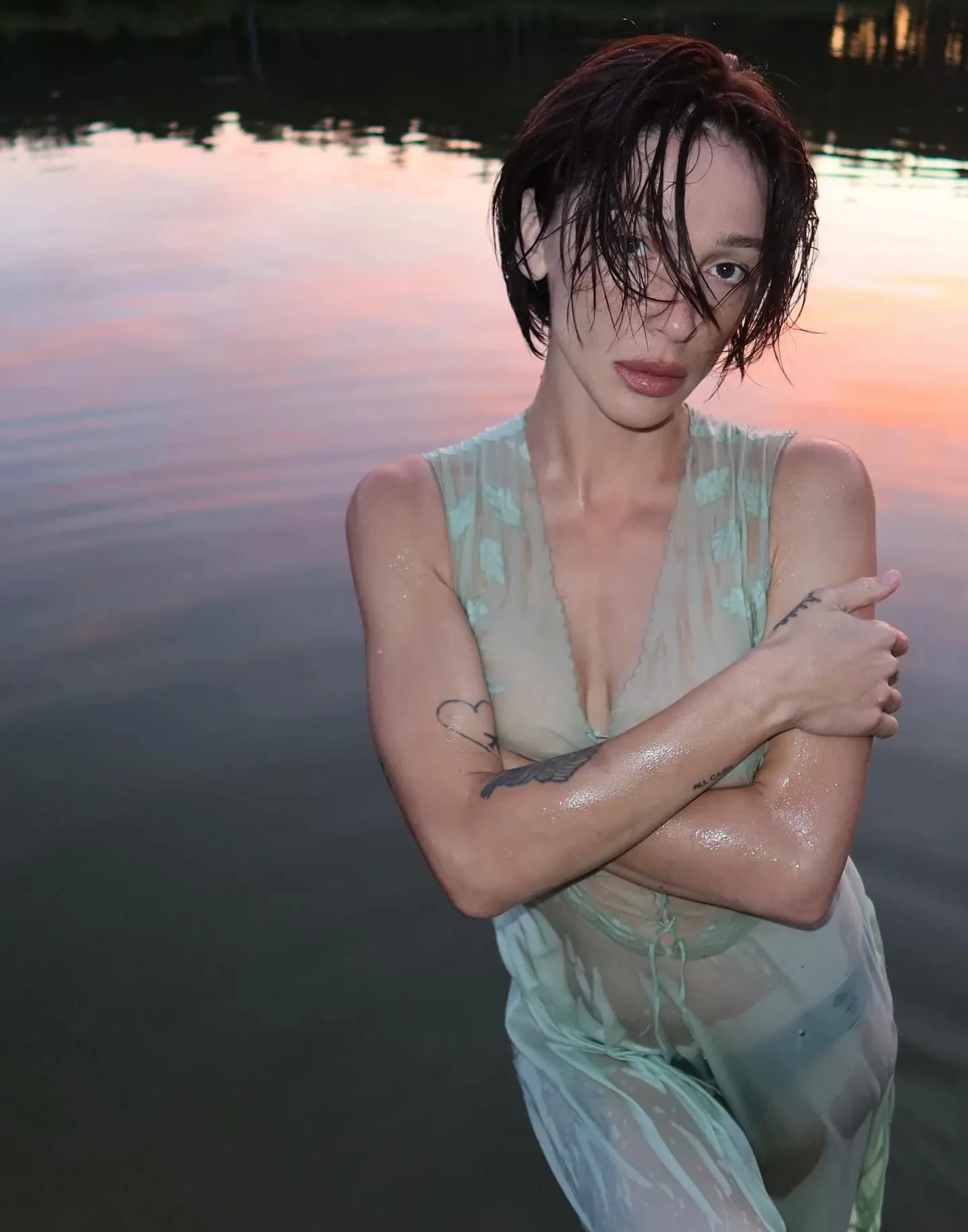34-летняя Настя Ивлеева опубликовала в инстаграме* серию "голых" снимков. На фото блогерша позирует по пояс в реке в прозрачной комбинации без бюстгальтера.
