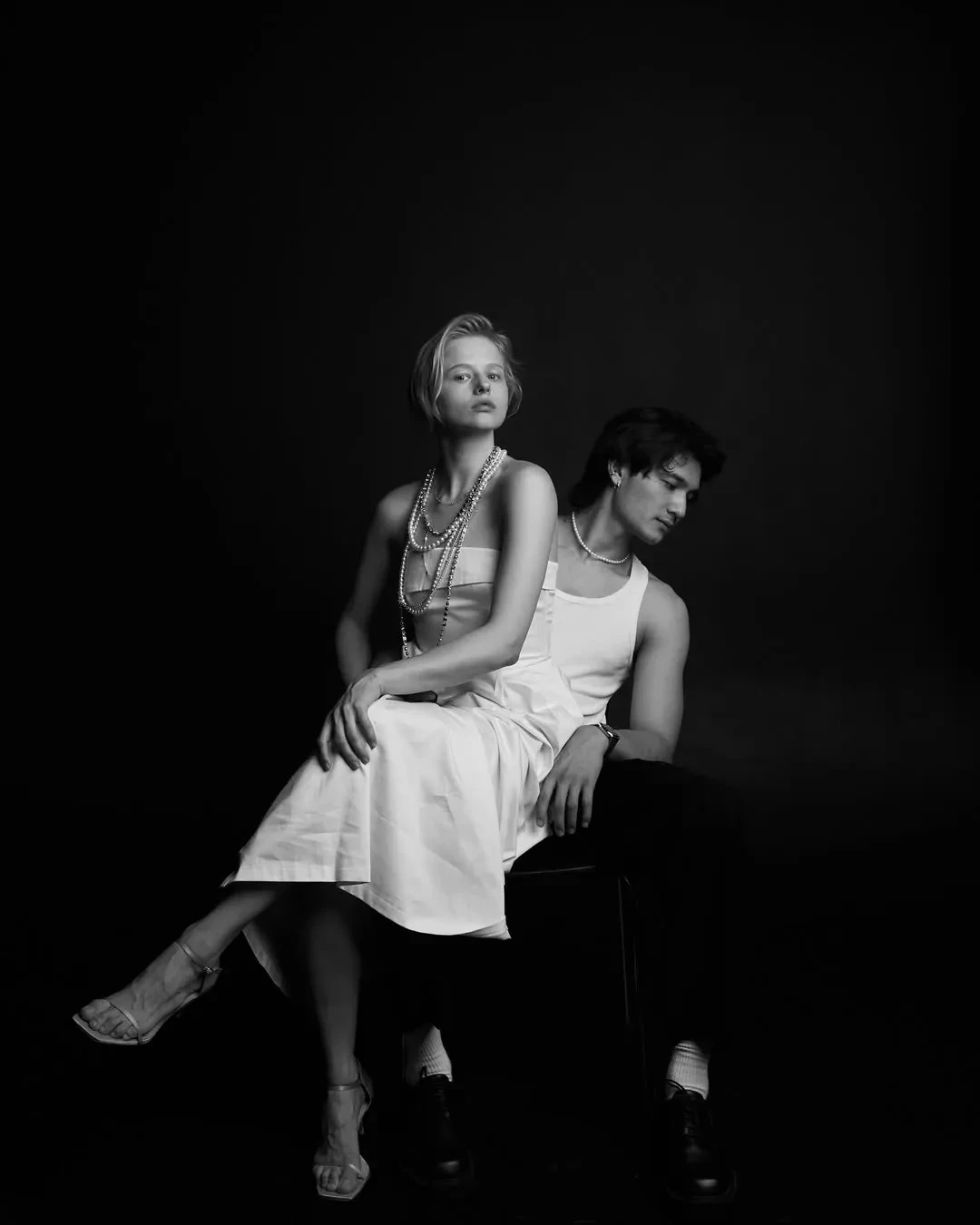 30-летняя Саша Бортич показала новые фотографии со своим бойфрендом, 27-летним актёром Давидом Сократяном. На чёрно-белых снимках пара позирует в фотоателье.