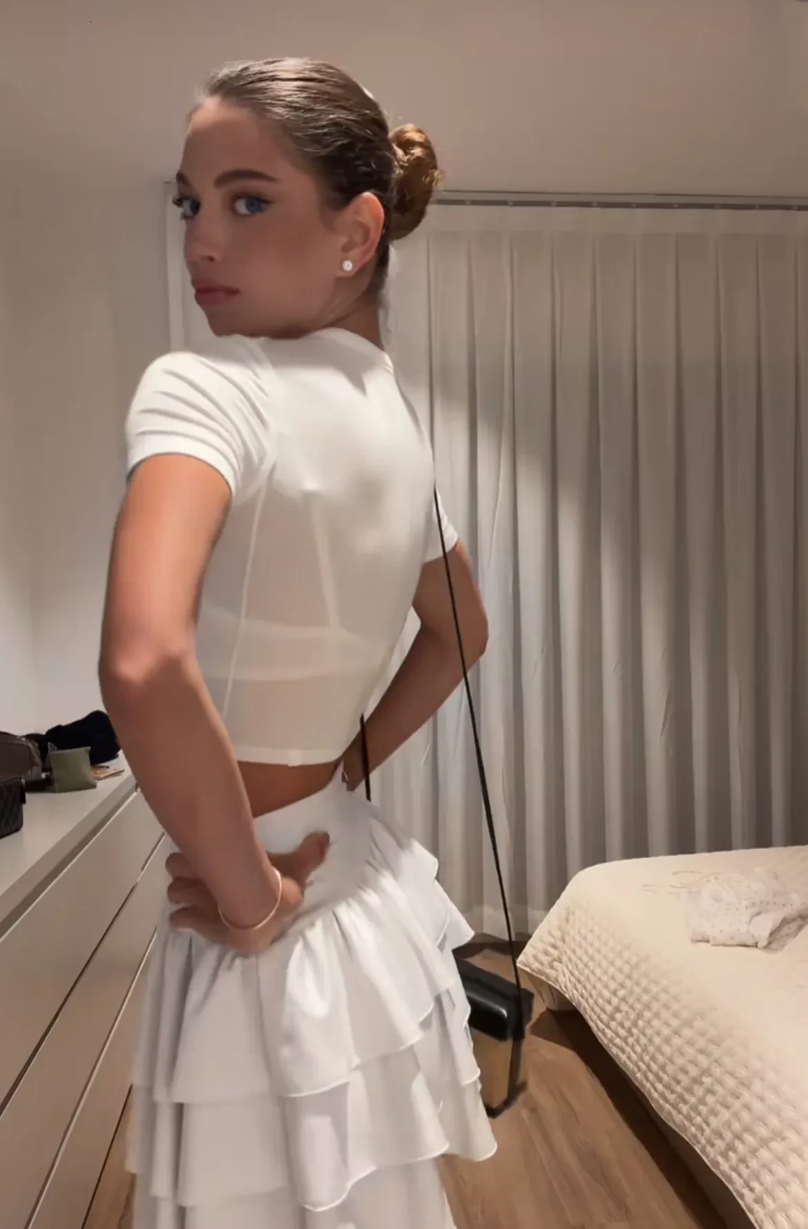 Сара проводит лето беззаботного подростка: загорает на местных пляжах, делает селфи в бикини, выгуливает вечерние образы и снимает новые видео для своего тиктока, который она активно ведёт в последнее время.