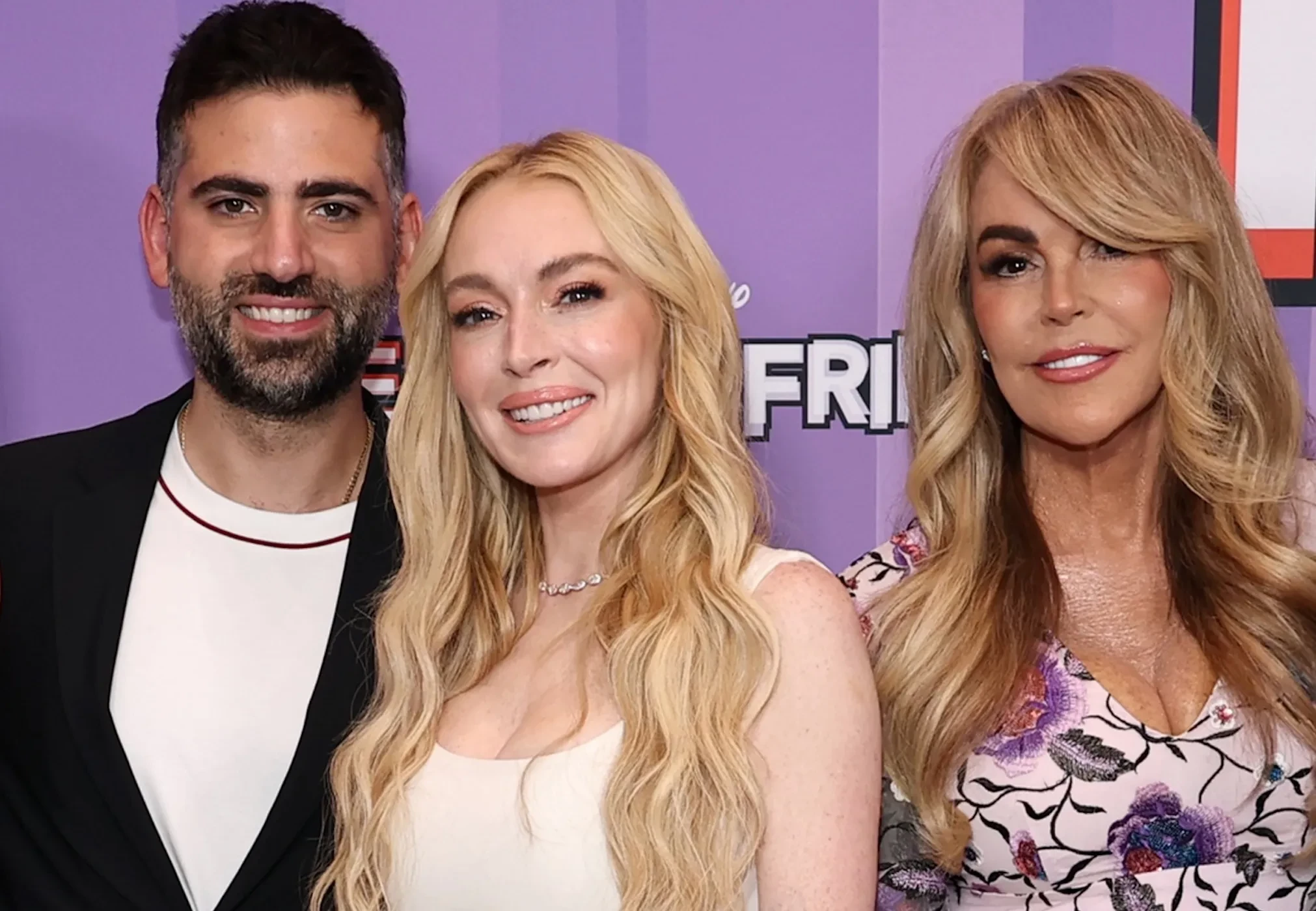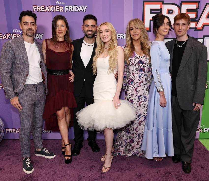 39-летняя Линдси Лохан пришла на нью-йоркскую премьеру сиквела культовой комедии "Чумовая пятница" вместе со своей семьёй. На дорожке актриса, преображение которой обсуждает весь мир, позировала с мужем Бадером Шаммасом, 62-летней матерью Диной, 37-летним братом Майклом, 31-летней сестрой Алианой и 29-летним братом Дакотой.
