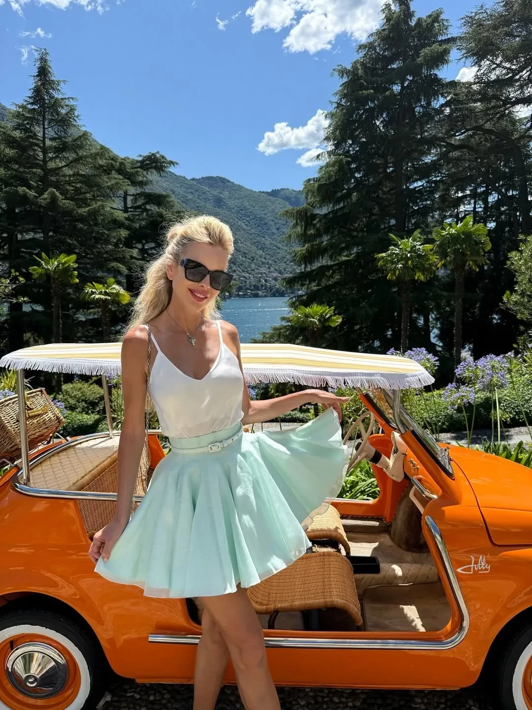 Экс-солистка группы "Мобильные блондинки" отправилась на водную прогулку по озеру Комо, а Наталья Рудова примерила кружевное платье на яхте и показала фигуру в бикини.