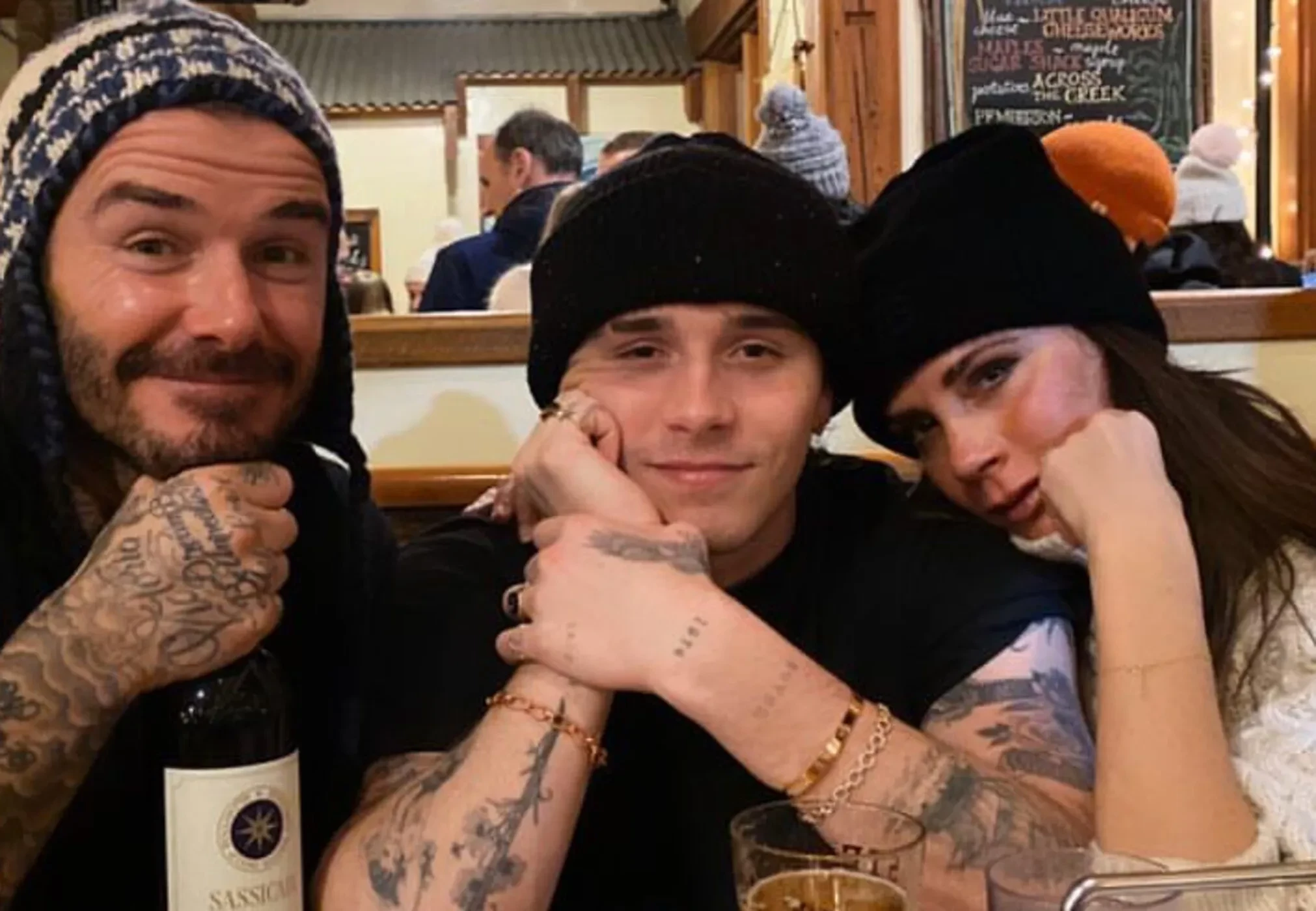 Бруклин Бекхэм с Николой Пельтц и родителямиПозже они помирились, вместе появлялись на публике и отмечали праздники, однако долго это не продлилось. В марте Бруклин и Никола не пришли на показ Виктории, не поздравили её с Днём матери и не появились на её дне рождения. Они также проигнорировали юбилей Дэвида Бекхэма и перестали упоминать родственников в соцсетях. По данным TMZ, Никола считает родителей мужа "токсичными", а сам Бруклин якобы не хочет с ними общаться. Зато с семьёй жены Бруклин поддерживает тёплые отношения и даже вместе с ними отдыхает.