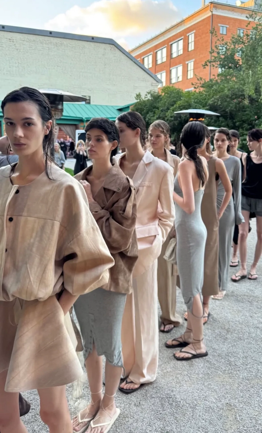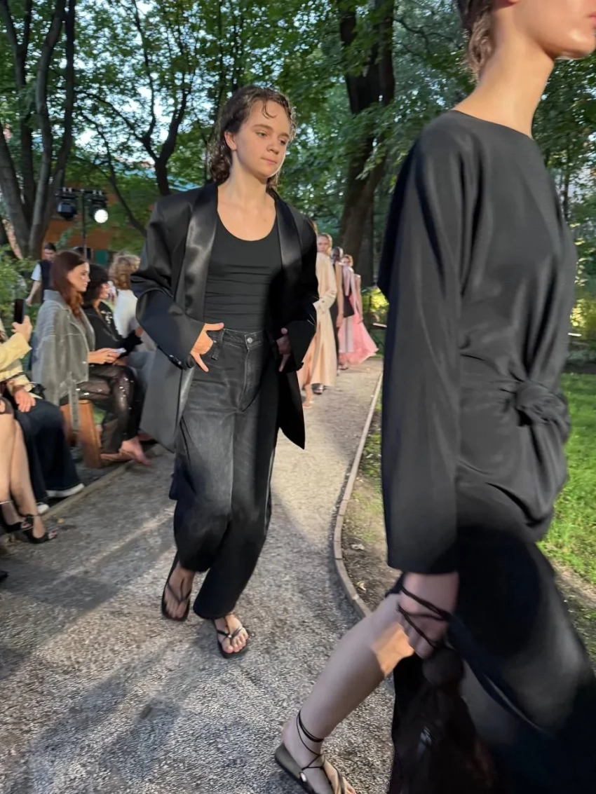 Лина ДембиковаПоказ Ruban прошёл на открытом воздухе под пение птиц вместо саундтрека. Гости оценили вещи из полупрозрачных тканей, трикотажа и кожи, а на подиум по традиции вышла дочь одной из основательниц бренда Алисы Рубан Петра. Постановкой шоу занимался известный в светских кругах дизайнер и фэшн-продюсер Артём Кривда.