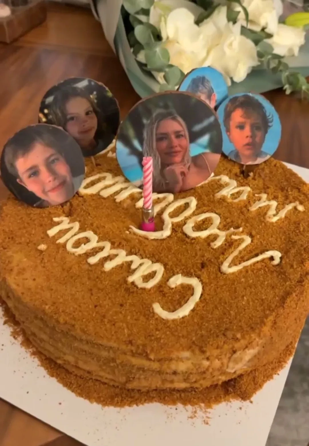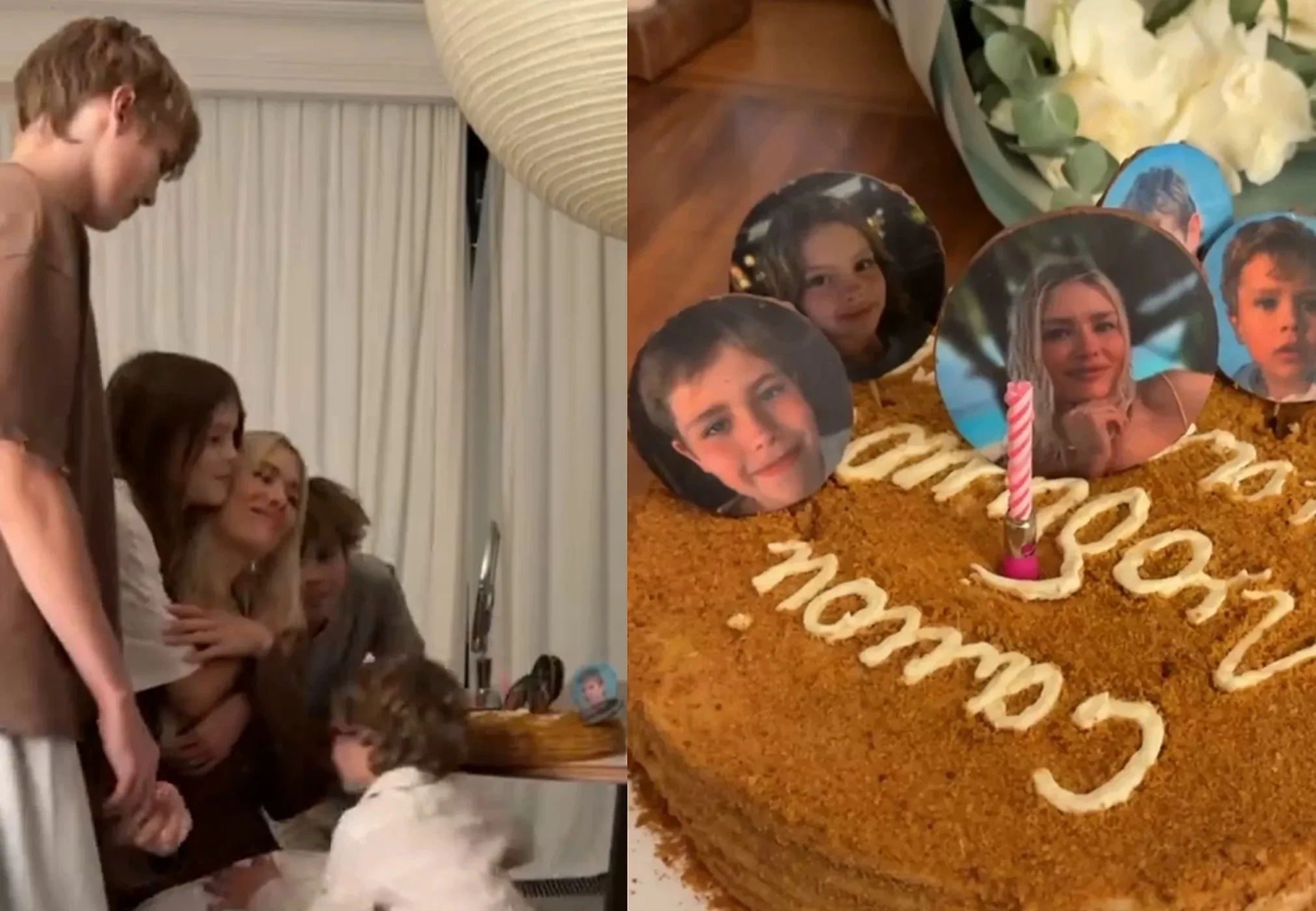 В своих соцсетях модель опубликовала серию видео, запечатлевших, как её поздравили дети: как они украсили дом цветами и шарами, как подарили украшенный вручную торт, а младший сын даже прочёл Елене стихотворение про маму. Открытку дети модели тоже нарисовали сами.