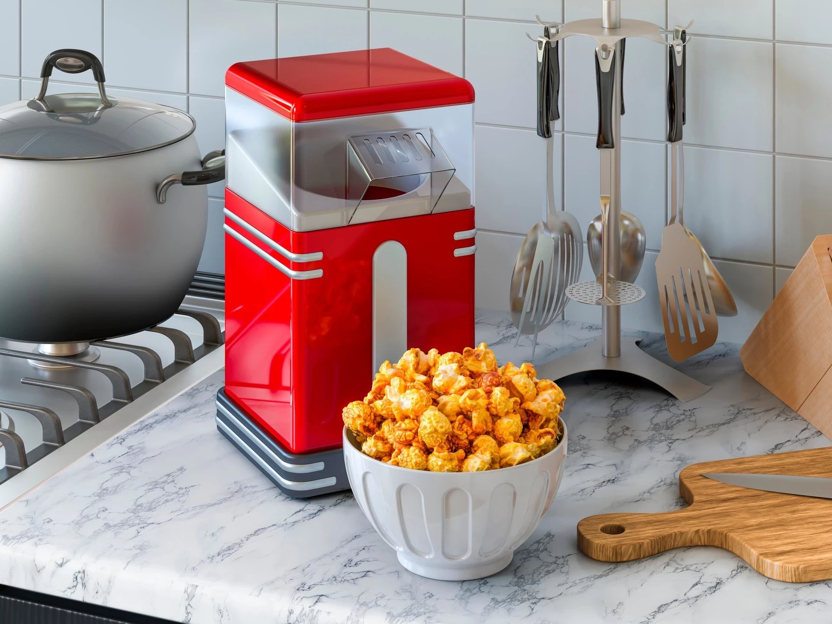 Занимает место и редко используется. Гораздо проще приготовить попкорн в микроволновке или кастрюле, добавляя любимые специи.