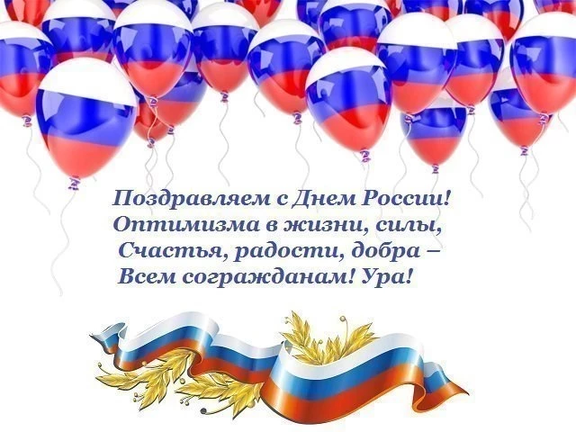 Сегодня день великой страны, День России. И в этот светлый день хочется нам всем пожелать гордиться тем, что мы россияне. Пусть каждый человек чувствует себя свободным, счастливым, нужным и уважаемым. Пусть никакие войны, стихийные бедствия, экономические кризисы не касаются нас. Желаю всем процветания, благополучия, достатка. С праздником всех нас!