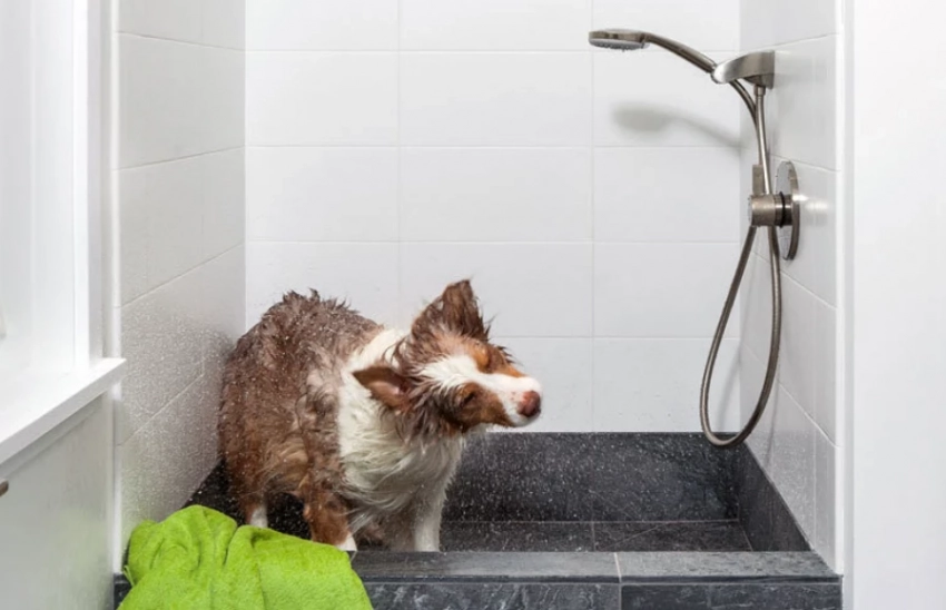 Прохладный душ (не холодный!) поможет быстро снизить температуру тела питомца.