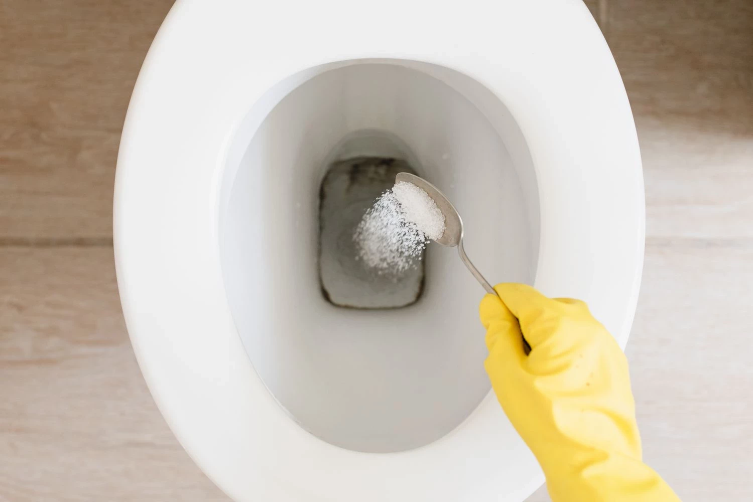 Дождитесь остывания воды и посыпьте дно и стенки унитаза небольшим количеством лимонной кислоты. Средство начнет воздействовать на известковый налет и пятна.