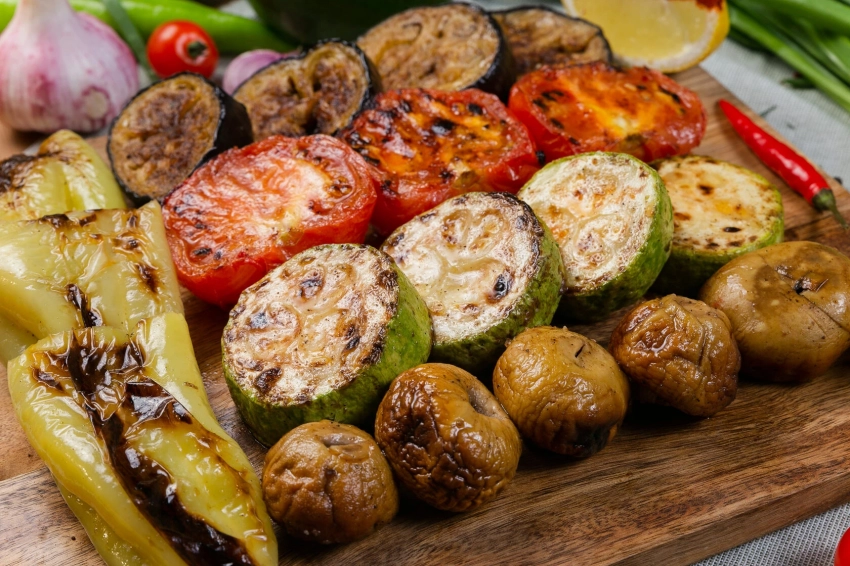 Овощи на углях — это гастрономическое открытие. Кабачки, баклажаны, перцы и помидоры, сбрызнутые оливковым маслом и приправленные солью, приобретают особый дымный вкус.