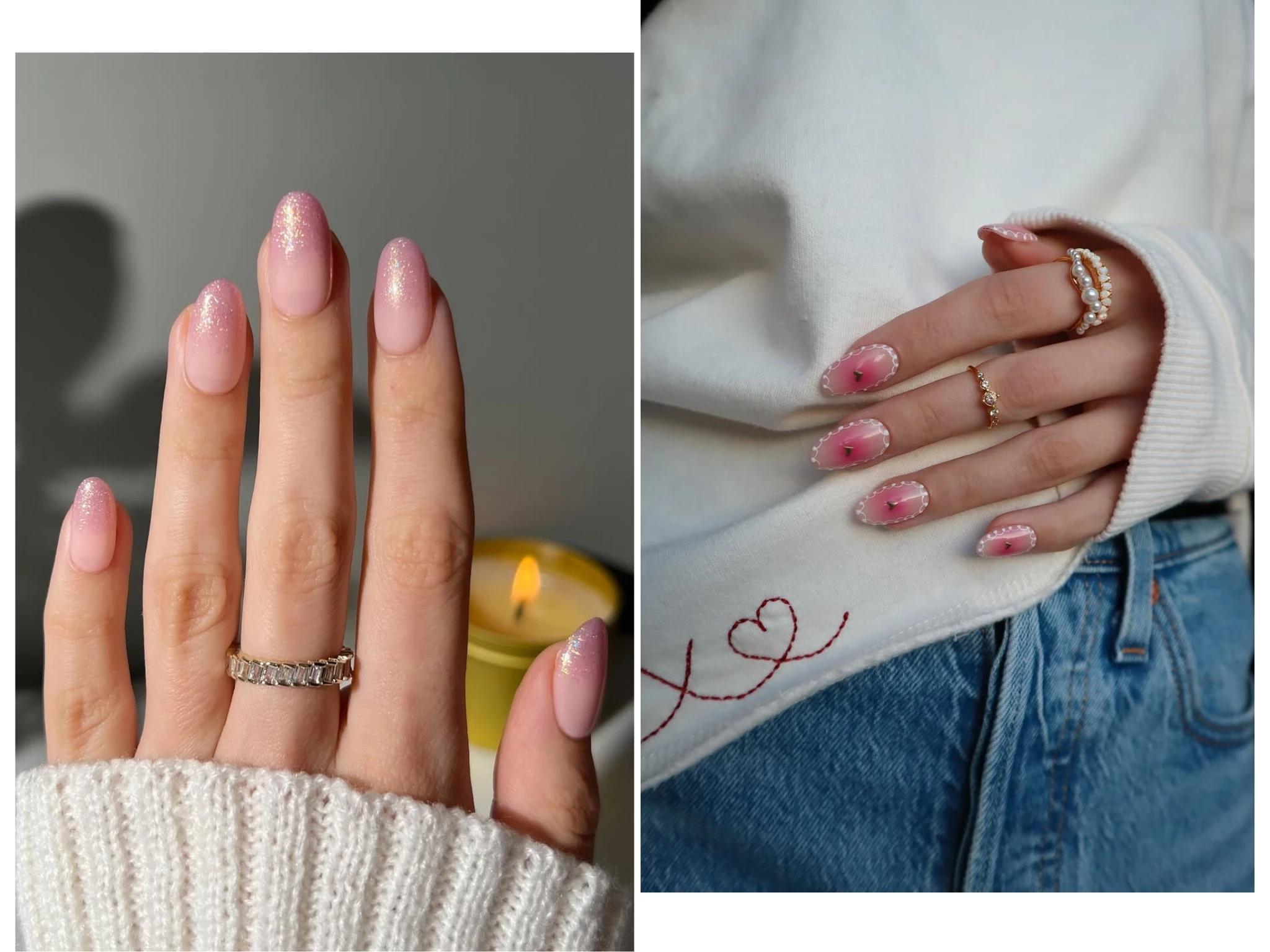Маникюр с эффектом глазури, популяризированный Хейли Бибер, теперь можно создать без дорогостоящих втирок. Просто нанесите сияющие тени поверх базового покрытия и закрепите топом. Это придаст ногтям мягкое свечение и модный «глянцевый» эффект.