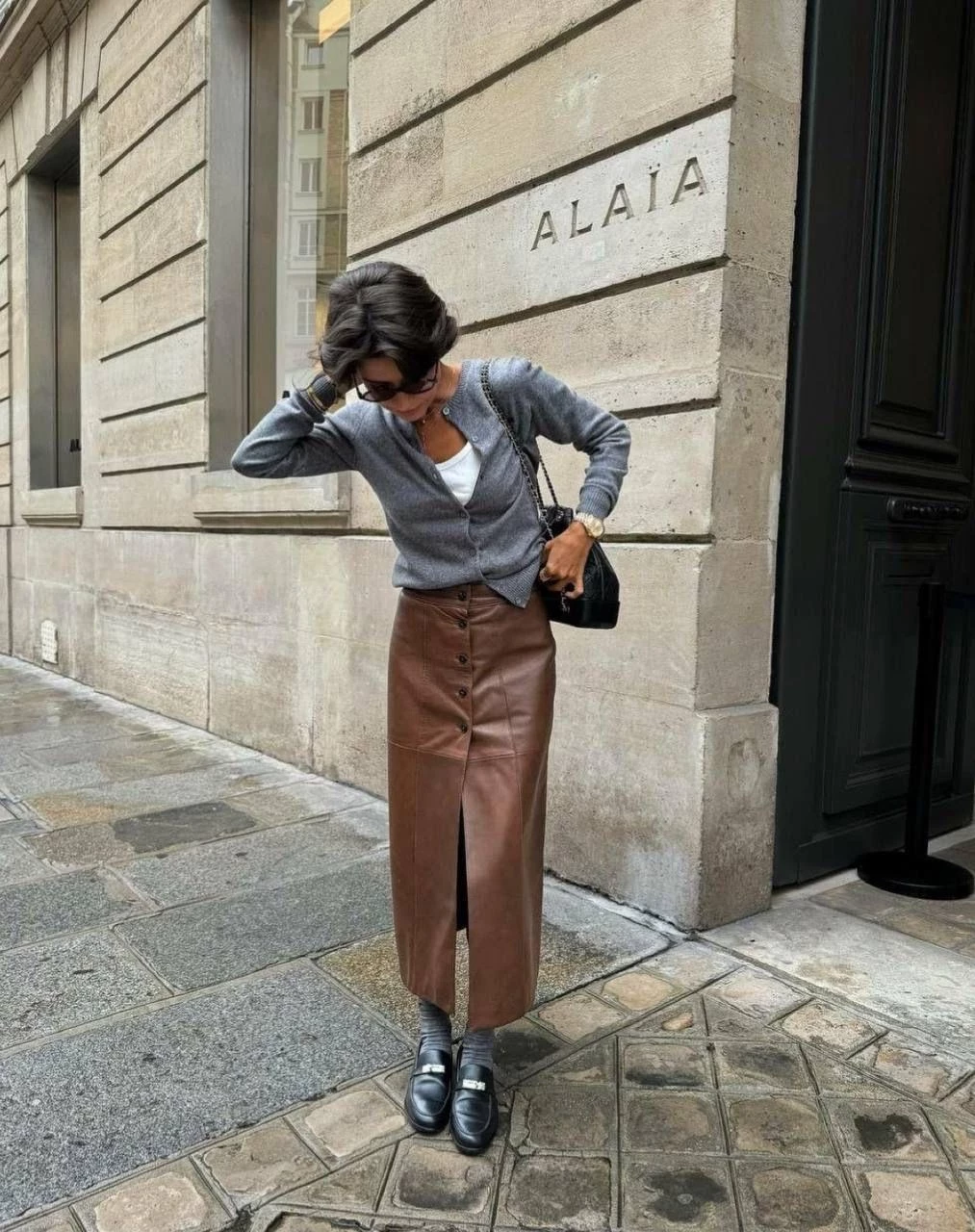 Что это: лакированные и полуматовые материалы в модных оттенках — от кофе с молоком до сливового. Это не гранж и не рок, а скорее мягкий блеск глазури.