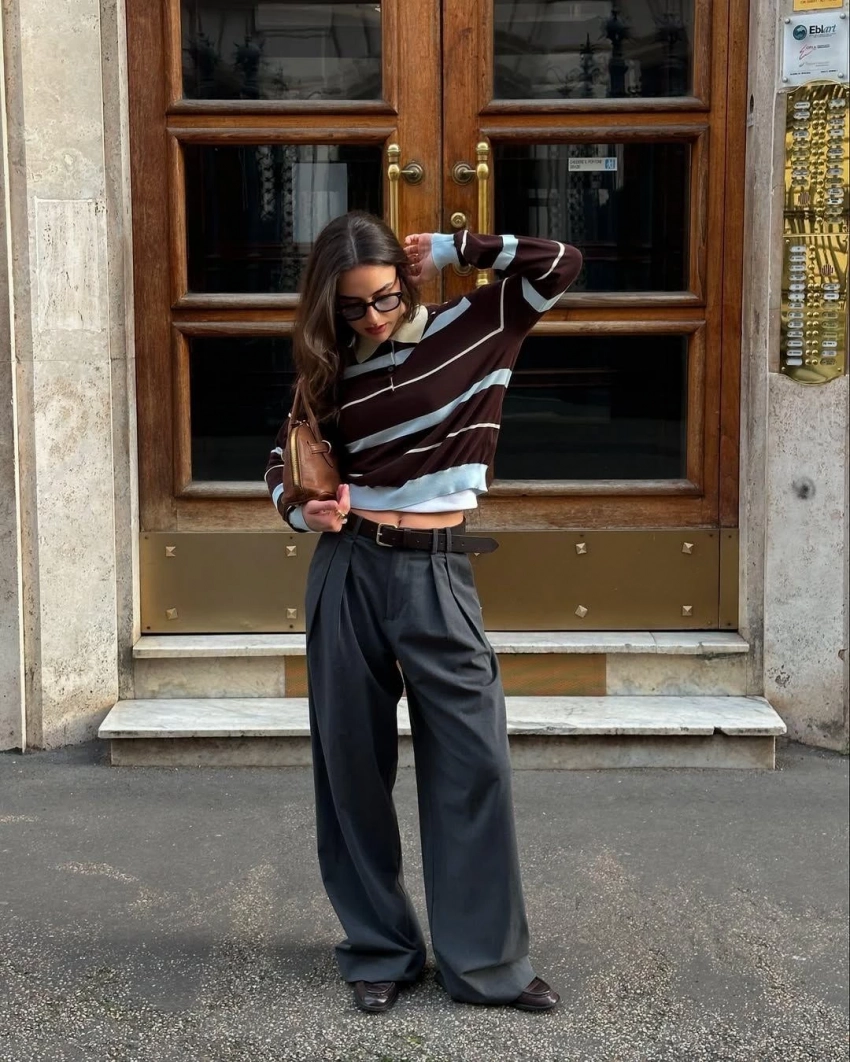 Почему это тренд: на смену откровенно спортивному стилю приходит «умный спорт» — изысканный, с налетом ретро. Такие лонгсливы уже появляются в коллекциях Jacquemus, Loewe и Bottega Veneta.