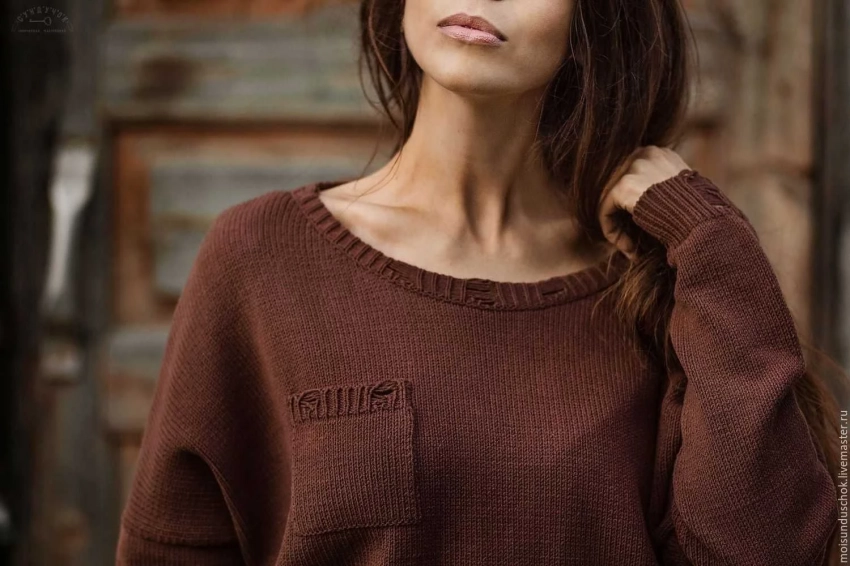 • Свитер с вырезом лодочка — подчеркивает линию плеч и возвращает уверенность.