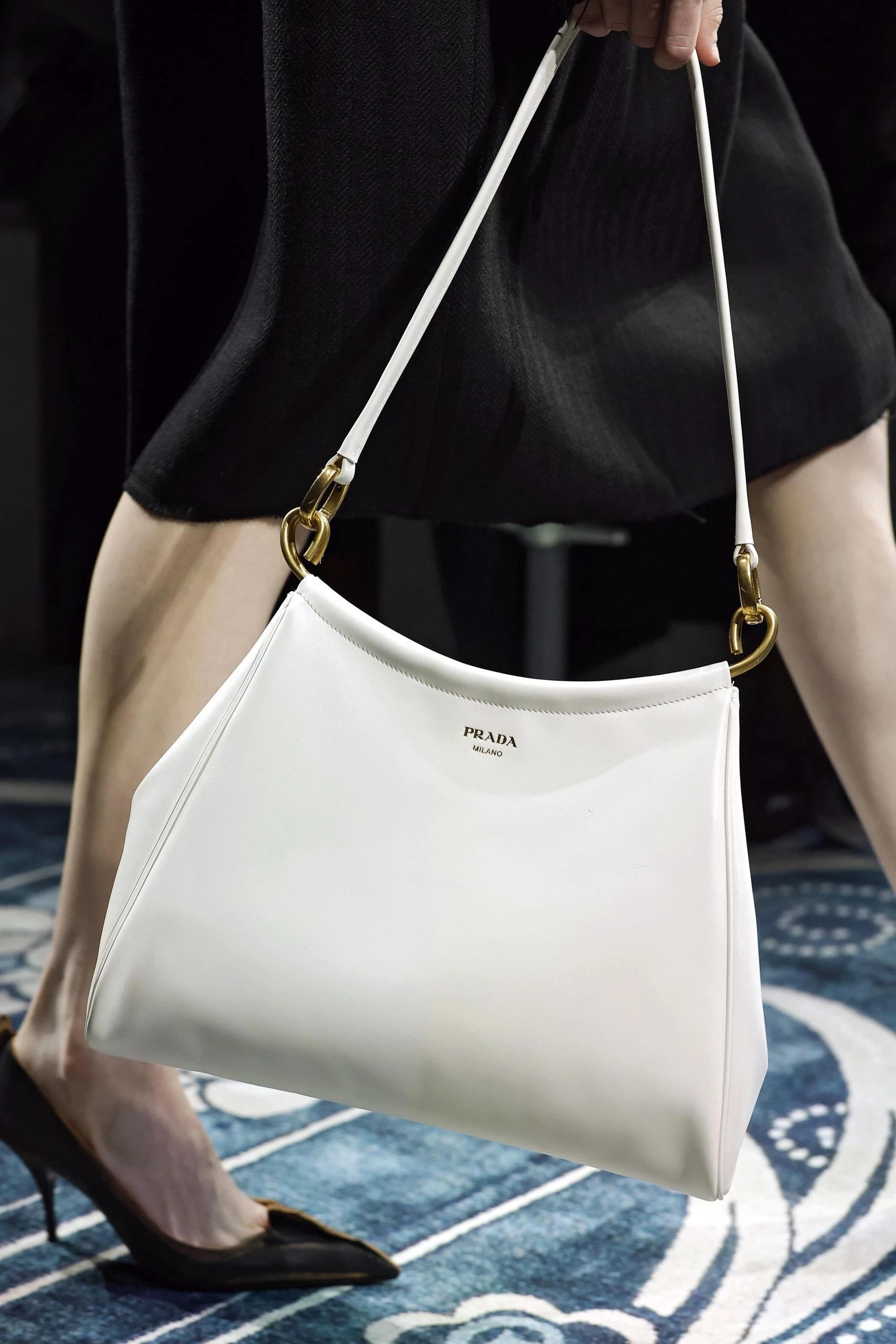 Сумки-трапеции снова актуальны. Их отличает лаконичная форма, длинные ручки и вместительность. Такая модель удобна и идеально работает в минималистичных образах. Но есть нюанс: лучше сочетать ее с современными силуэтами и контрастными фактурами, а не с нарочито романтичными платьями.