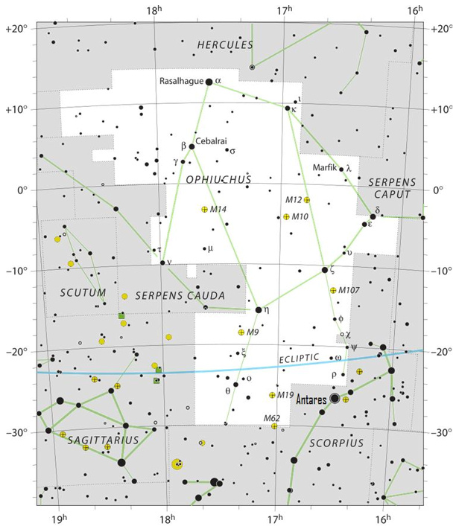 Как найти созвездие Змееносца на небе