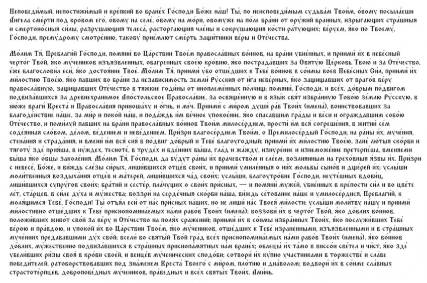 22 февраля 2025 года мы можем отдать дань памяти тем, кто отдал свою жизнь, исполняя воинский долг. В этот день особенно важно помолиться за павших воинов, вспомнив их подвиг и жертву. Молитва будет полезна для всех, кто потерял своих сыновей, братьев, мужей и друзей, помогая найти утешение и духовное спокойствие в сердце, а также просить для них вечного покоя в Царствии Небесном.