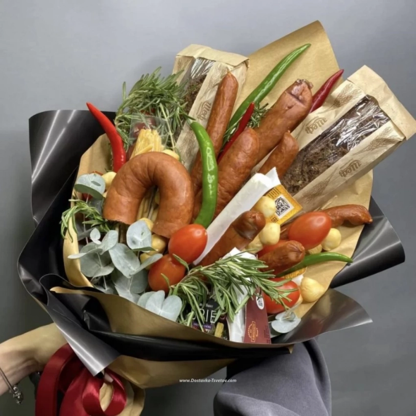 В качестве мужского подарка актуальными остаются съедобные букеты, составляют которые из сочетания цветов с продуктами или делают только из съедобных компонентов. По тематике наборы могут быть сладкими, мясными, сырными, состоять из закусок к определенному виду алкоголя. Композиции в корзинах часто дополняют бутылкой вина, интересный вариант можно подобрать и для поклонников пенного.