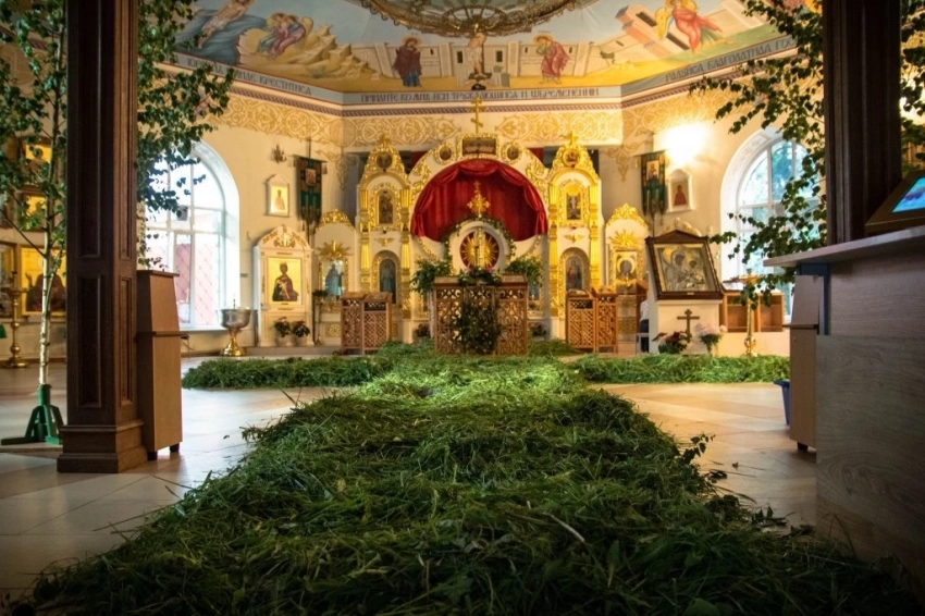 Особую роль в эти дни играет зелёный цвет — цвет жизни, Святого Духа и благодати. Именно поэтому на Троицу в храмах всё украшено свежими травами, ветвями берёзы, полевыми цветами. Священнослужители облачаются в зелёные ризы, а прихожане приносят с собой букеты трав и веток, чтобы осветить их и затем унести домой в качестве оберега. Считалось, что освящённая зелень защищает жилище от зла, болезней и бедствий.
