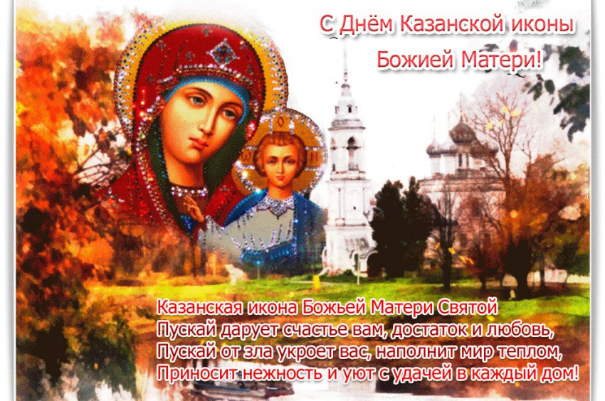 Как поздравить верующих 4 ноября в День Казанской иконы Божией Матери с помощью душевных картинок и стихов