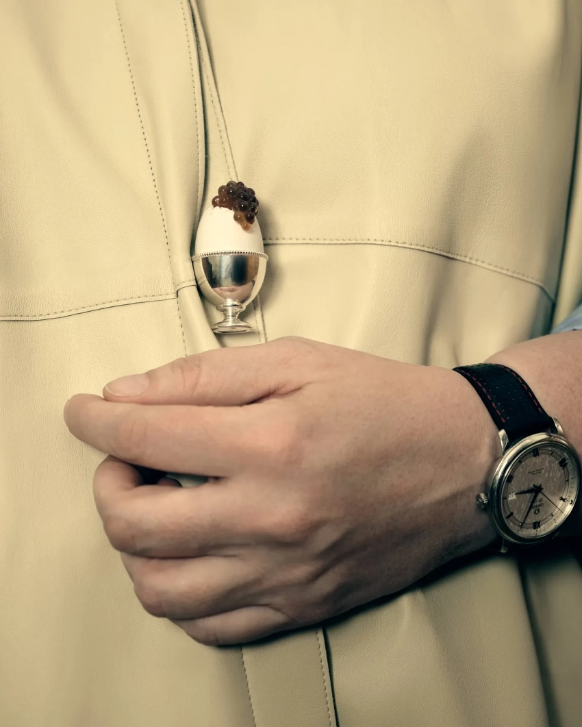 Коллекция включает золотые подвески в виде чайных ложек, броши в форме платинового ножа с гильошированной эмалью и "маслом" из янтаря, а также в виде яиц с красной и чёрной икрой из натуральных камней. По словам основательницы бренда Дианы Джанелли, ей хотелось, чтобы эти изделия представил "интеллектуальный человек с отличным чувством юмора".